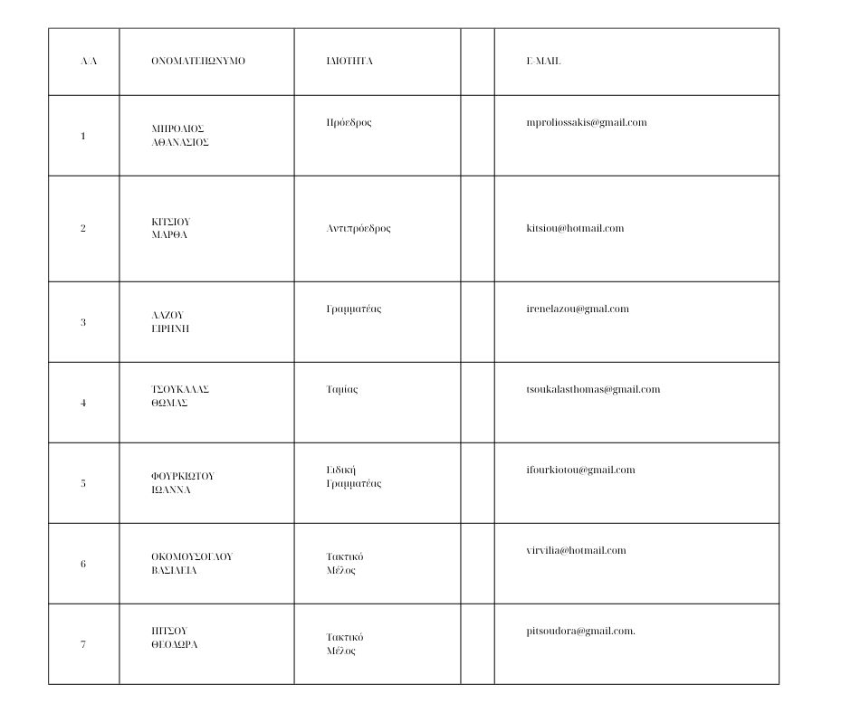 Σήμερα Πέμπτη 24 Οκτωβρίου 2024 και ώρα 8μ.μ έως 9μ.μ., στην Καλαμαριά, συνεδρίασε το Δ.Σ του Συλλόγου Γονέων του 7ου Γυμνασίου με παρόντες τους: